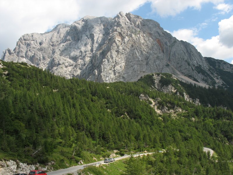 Z przełęczy Vrsic rozciągają się fantastyczne widoki między innymi na Prisojnik (2547 m).