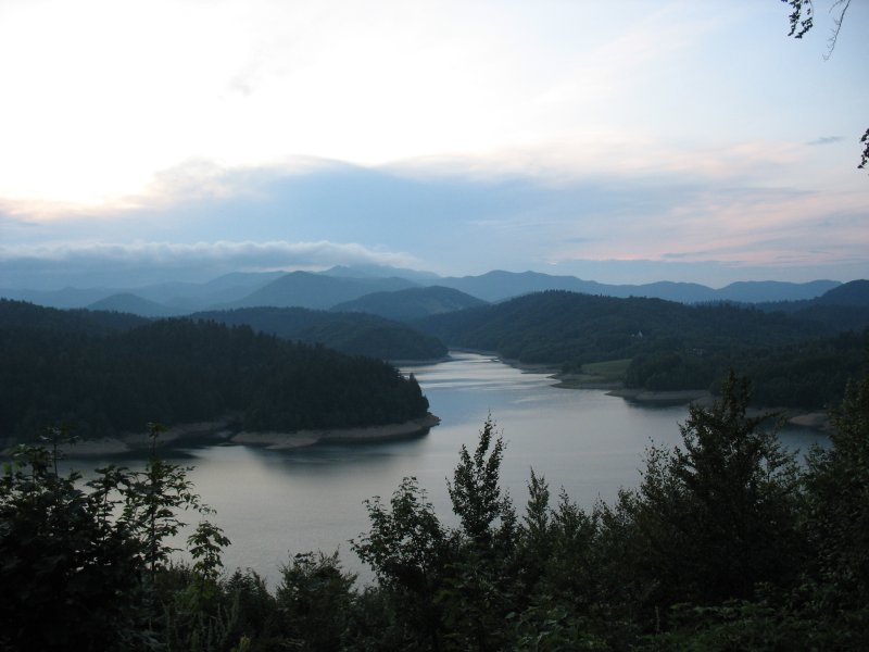 jezioro Omladinsko, Chorwacja Po drodze spotkałem bardzo ładne jezioro. Było jednak kilkaset metrów niżej, pomysł zjechania do niego i tam szukania sklepu został odrzucony.