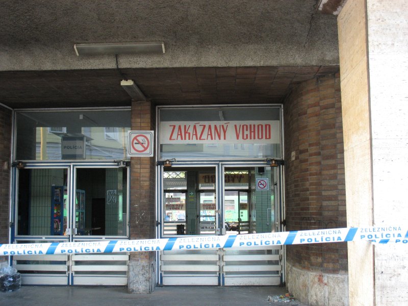 Zilina, Słowacja Ciężko powiedzieć o co chodziło, że zamknięto wejście na dworzec, ale w tym dniu był jakiś ważny mecz. Wjeżdżając do miasta myslałem że jest tu z wizytą conajmniej prezydent USA. Na każdym skrzyżowaniu stało po kilknunastu policjantów w pełnym uzbrojeniu - kamizelki kuloodporne, pały, tarcze itp.