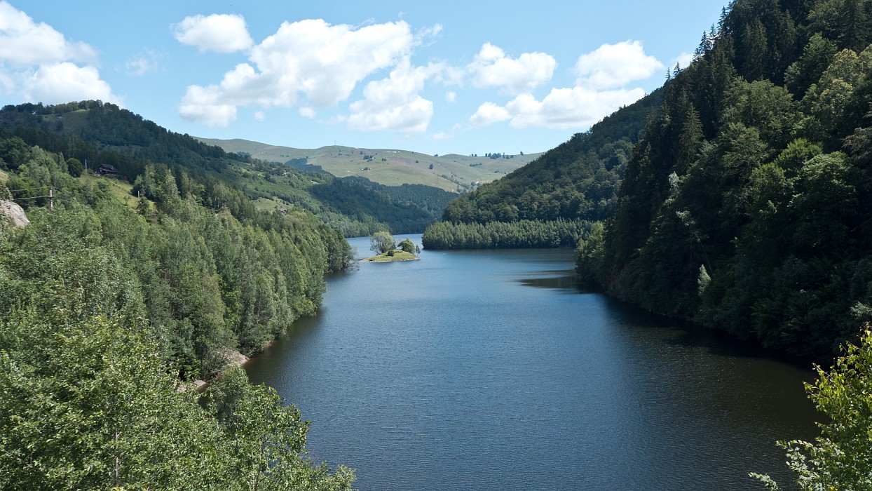 droga 67c, Rumunia Następne jezioro po drodze. Kiedy droga dojeżdża do takiego zbiornika przestaje opadać i wije się wzdłuż brzegu, czasami po płaskim, czasami łagodnie pod górę lub z góry. Na końcu dociera się do zapory i rozpoczyna się stromy zjazd. Sytuacja taka powtarza się na tym odcinku kilkukrotnie.