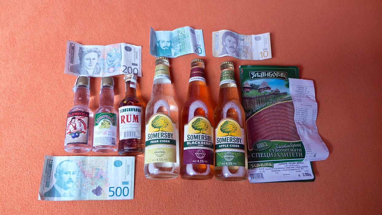 Temerin, Serbia Pierwsze zakupy spożywcze w Serbii. Serbską walutą jest dinar który kosztuje około 1 euro za 100 dinarów. Nabyłem tu bardzo dobrą rakiję która sprzedawana jest w plastikowych buteleczkach po 100ml i doskonale nadaje się do zabrania w trasę.