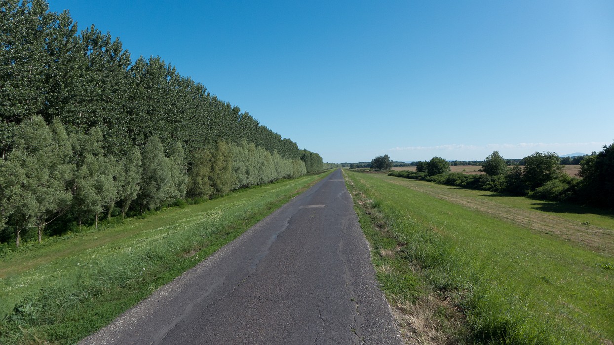 droga wzdłuż Cisy na północ od Tiszaujvaros, Węgry