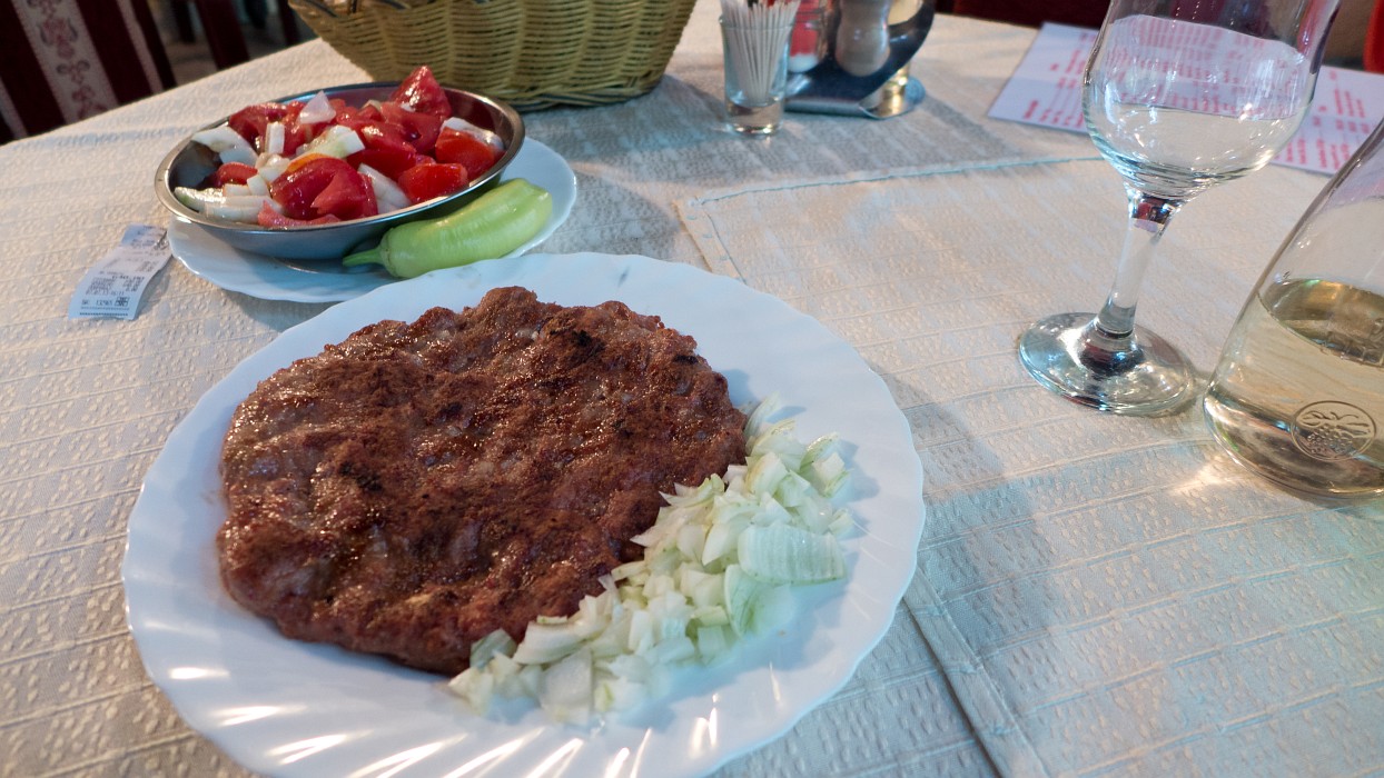 Zemun, Serbia ... oraz pleskavicę, ale tym razem ledwo dałem jej radę. Niby gramaturę ma standardową - 300 gram - ale jest to naprawdę mocno napychające (i pyszne) danie. Często do pleskavicy podają w zestawie cebulkę, natomiast sałatkę trzeba zamówić dodatkowo.
