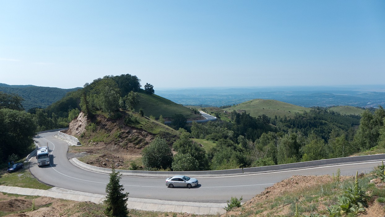 Transalpina, Rumunia Rozpocząłem podjazd Transalpiną. Droga od razu prowadzi pod górę, praktycznie nie dając żadnego wytchnienia. Na szczęście od kilku lat (bodajże od roku 2010) posiada nową nawierzchnię - doskonały asfalt. Wcześniej była ona szutrowo-błotnista i w przypadku deszczu przejechanie jej było mocno utrudnione.